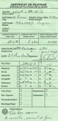Le rapport du pilote de la station de Rouen embarqué à bord du LCVP pour cette première navigation : très bon navire !
